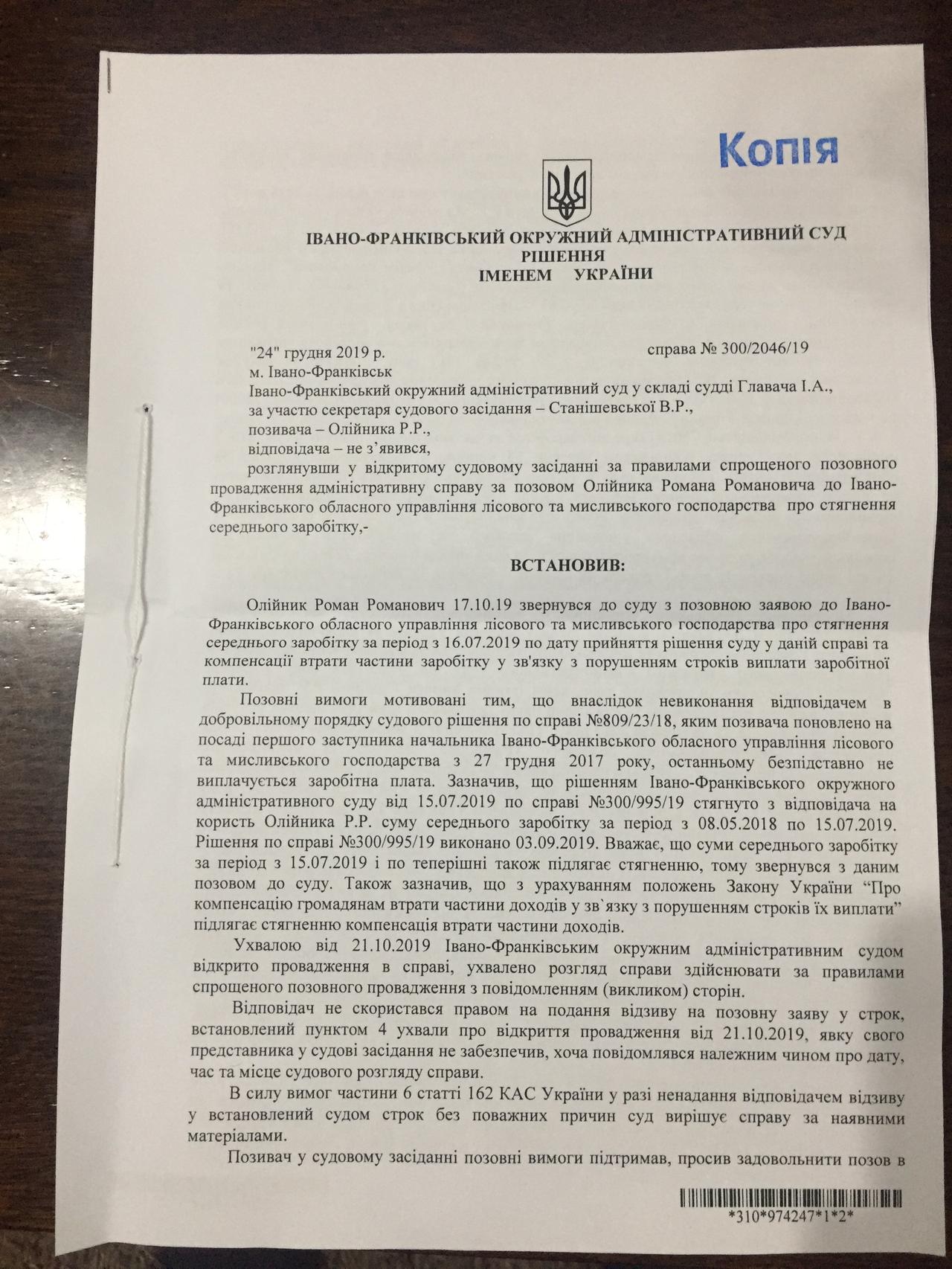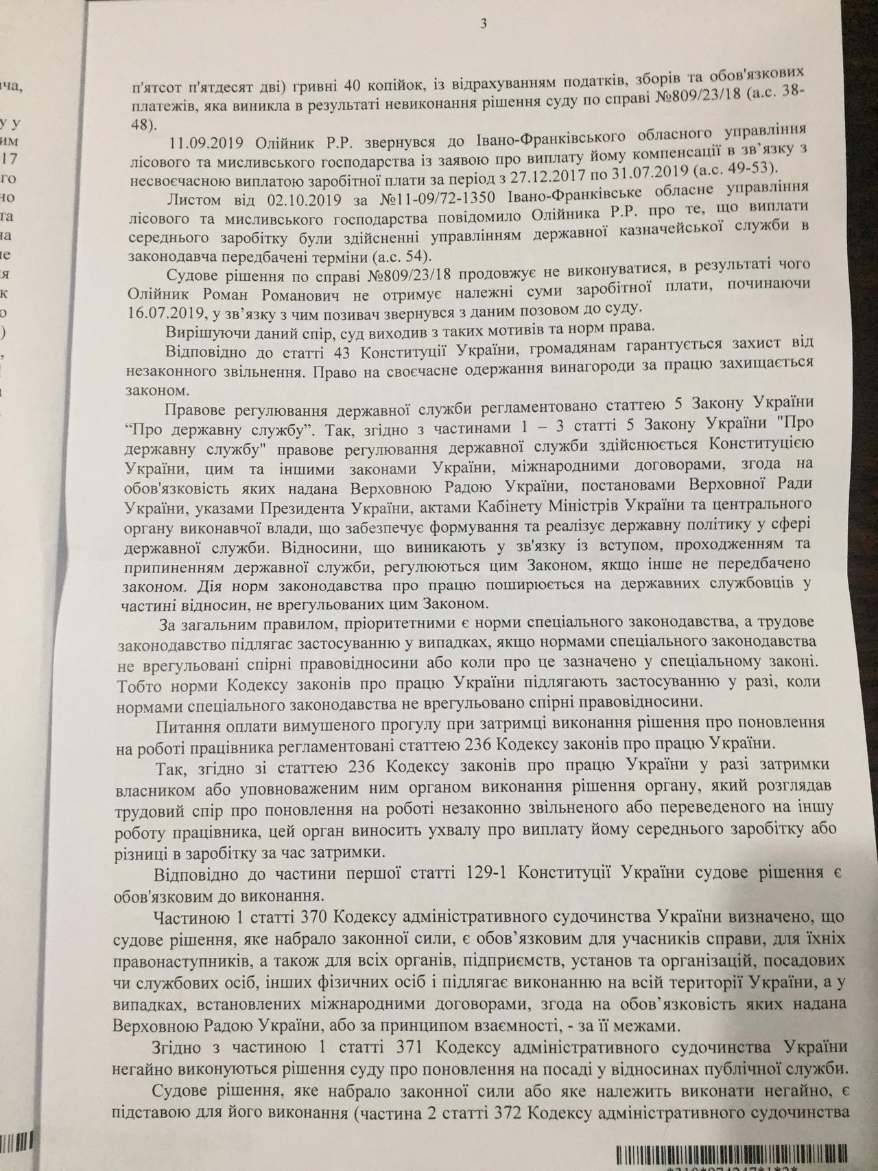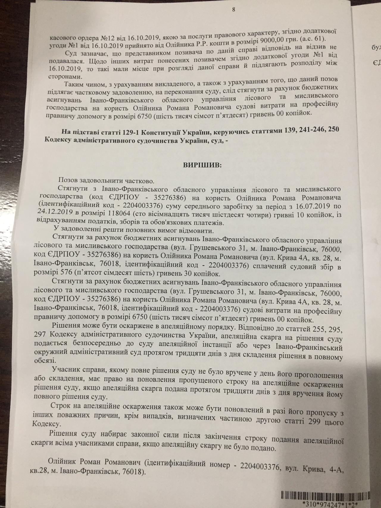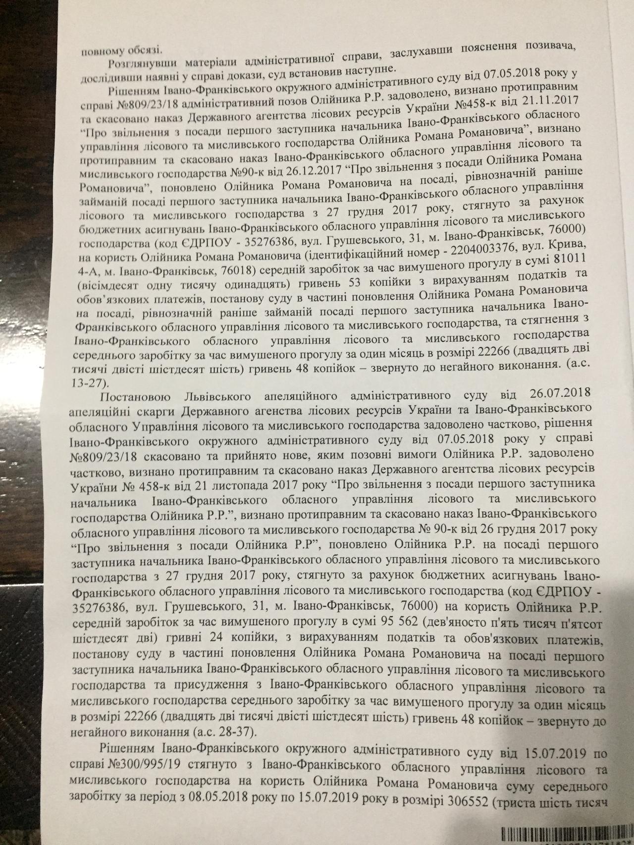 Спешу поделиться с Вами хорошей новостью. Принято решение суда о выделении очередного транша Роману Олейнику. Это компенсация за незаконное увольнение. Таким образом, общая сумма, которую выплатило государство незаконно уволенному и не восстановленному, несмотря на решения суда, специалисту перевалила за 500 тысяч гривен. Мало кто в СИСТЕМЕ столько получает ничего не делая, и ни за что не отвечая, будучи свободным от нервотрепки и общения с мало интересными людьми… Конечно государство несет потери и не только в гривнах, но и из-за катастрофической нехватки среди госслужащих -лесоводов таких специалистов как Роман. Рано или поздно потраченные гривни государство должно взыскать с виновных в незаконном увольнении. Уголовное дело уже открыто. А вот времени, которое Роман мог посветить созидательной работе, уже никто государству и отрасли не вернет.