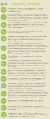 5 січня 1932 року Постановою ЦВК і РНК СРСР ВРНГ ліквідували і замість неї створили Народні комісаріати, в тому числі, й лісової промисловості. В Україні створили Управління уповноваженого Наркомліспрому СРСР при РНК УСРР. Ця структура проіснувала до 1936 року. 22 жовтня 1936 року в Україні організували Наркомат лісової промисловості УСРР. Деякі законодавчі акти, що видали органи державної влади в період з 1936 по 2013 рік, подаємо у вигляді таблиці.