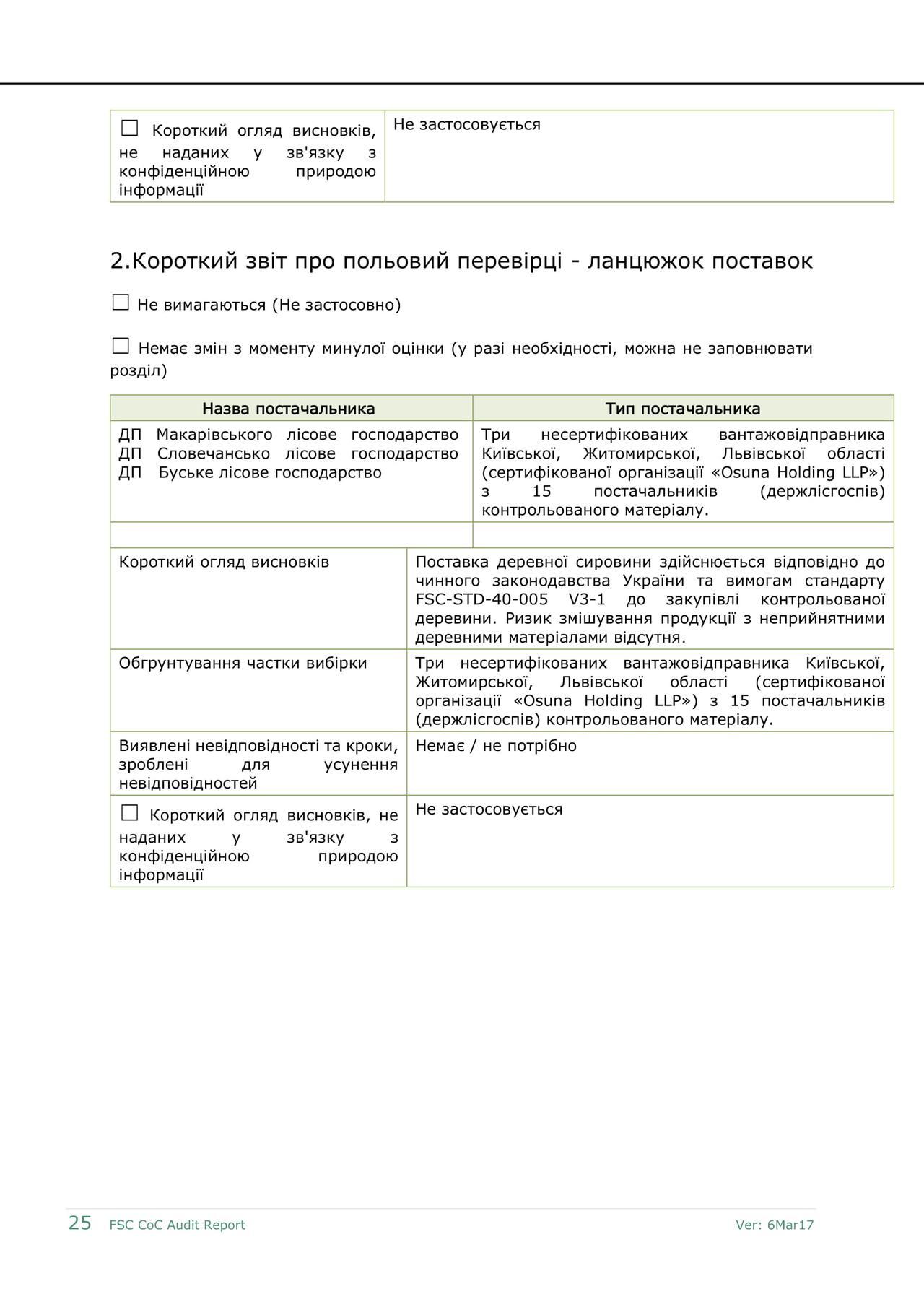 Утримувачам сертифікатів, які купують продукт, що містить деревину від постачальників контрольованої деревини, також необхідно буде ввести породи і країну заготівлі. Ця інформація повинна бути надана постачальником (відповідно до стандарту ланцюга постачання).