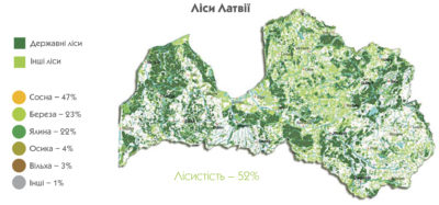 Латвія — країна у Прибалтиці, на північному сході Європи. Територія Латвії становить65 тис. кв. км. Ліси є помітною рисою Латвії, вкриваючи 52% її території. Лісова промисловість і деревна продукція відноситься до числа найважливіших галузей експорту країни. Уздовж узбережжя переважають (69% площі всіх лісів) хвойні ліси (сосна, ялина), в інших районах (31% площі всіх лісів) — листяні (береза, осика, чорна і біла вільха).