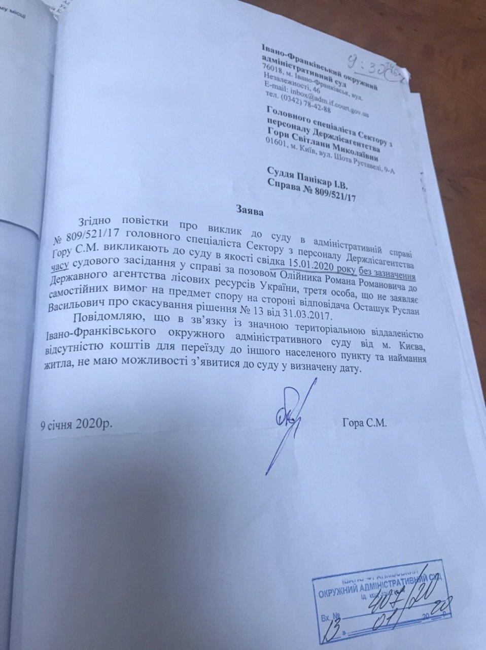 Сегодня, в соответствии с решением Верховного суда (декабрь, 2018), после более чем годичной тягонины, состоялось повторное рассмотрение в первой инстанции дела о нарушениях при проведении конкурса на Начальника Ивано-Франковского ОУЛМГ Гослесагентства Украины. Мы надеялись порадовать читателей свидетельскими показаниями членов конкурсной комиссии, но они не явились на суд в связи с тяжелым материальным положением большей части комиссии и невозможностью найти её меньшую часть.