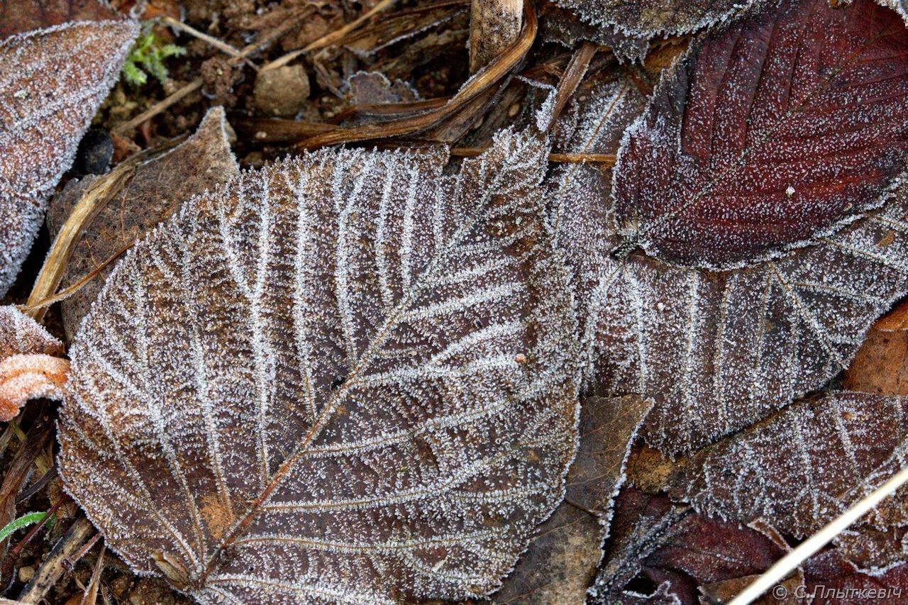 Фото: Вот такими сахарными сегодня были листья в углу нашего газона – есть польза от некачественной уборки, можно кадр колоритный среди зимы сделать…