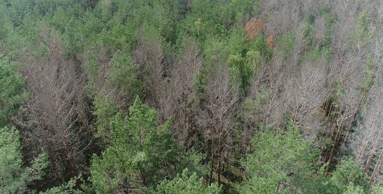 агадаємо, що останніми роками через несприятливі кліматичні умови – аномально теплі зими та малу кількість опадів – всихання соснових насаджень через пошкодження дерев шкідниками і хворобами набуло ознак біологічної пожежі по всій Європі.