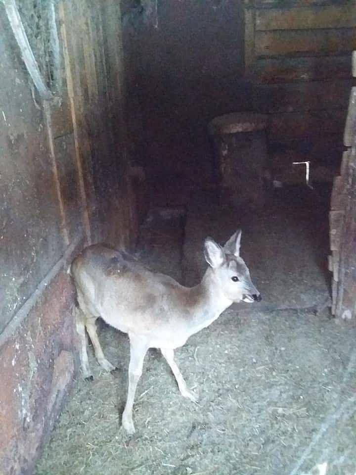 Житель гірського селища Усть-Чорна Тячівського району на Закарпатті Михайло Дьордяй побачив на своєму обійсті біля огорожі залякану й виснажену козулю. Чоловік припускає, що дика тваринка рятувалася від вовків і забігла на його подвір’я.