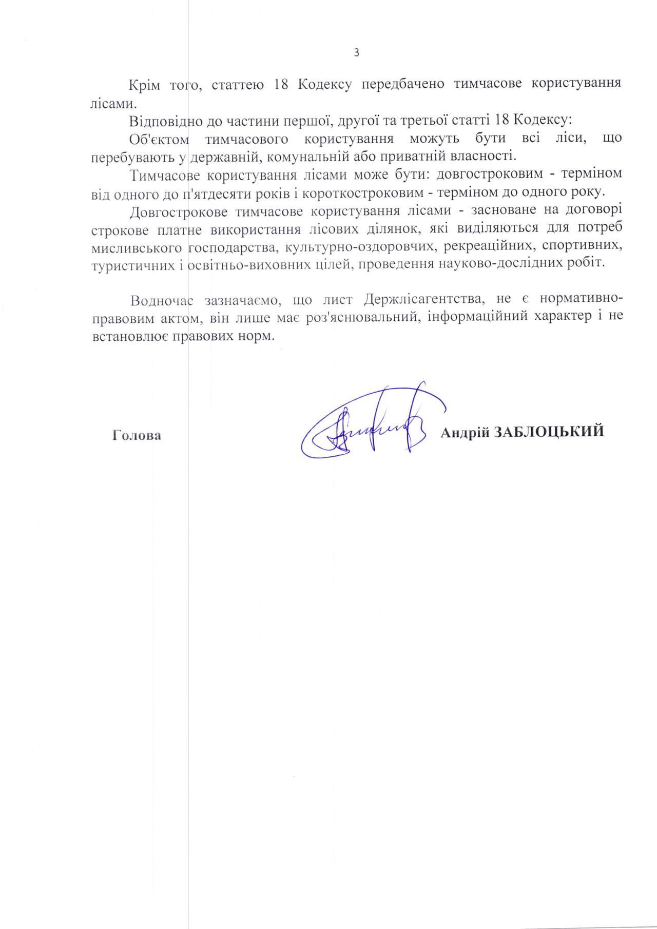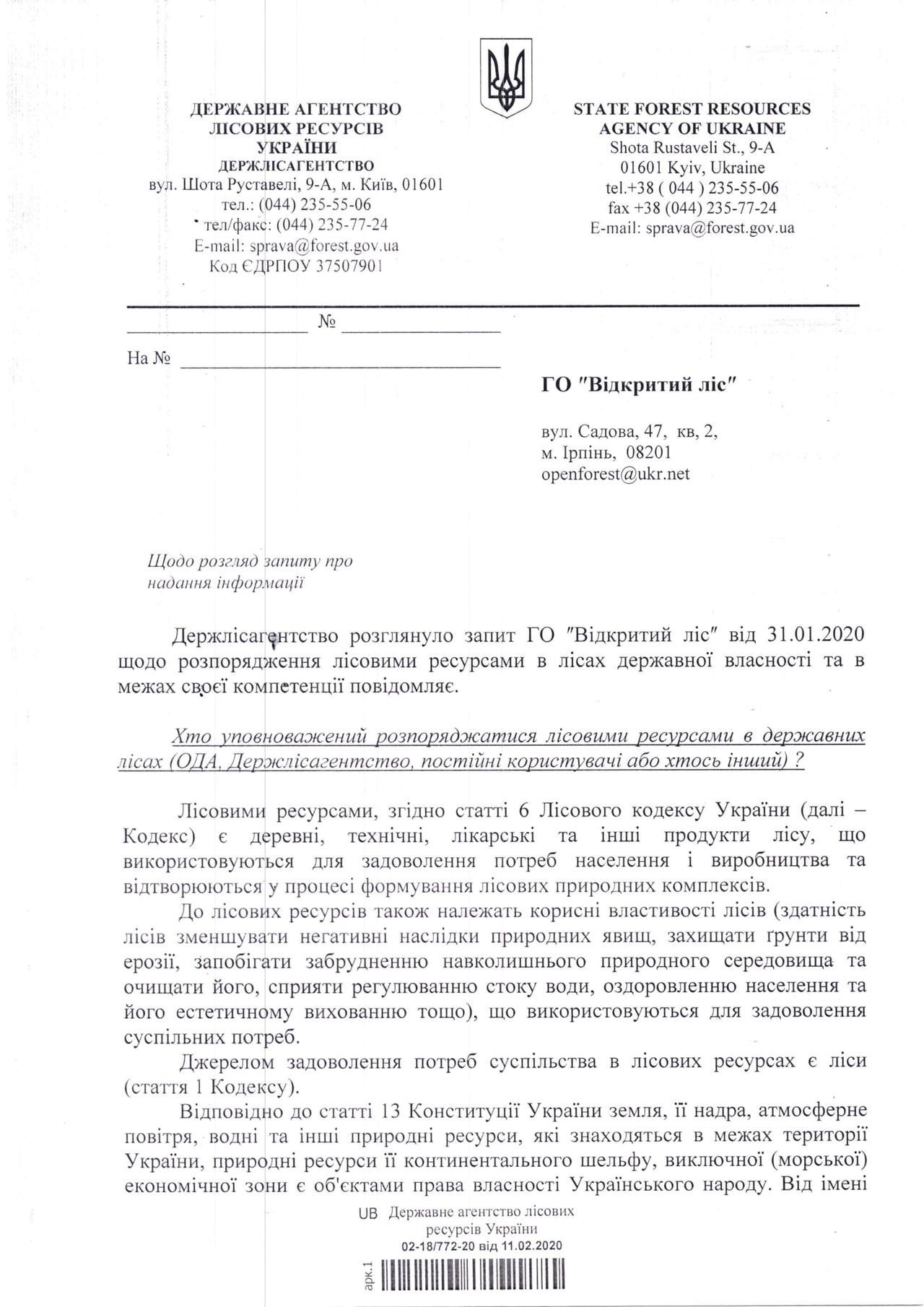 По розміщеним коментарям – найбільш адекватна відповідь у Держлісагентства.
