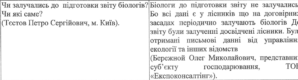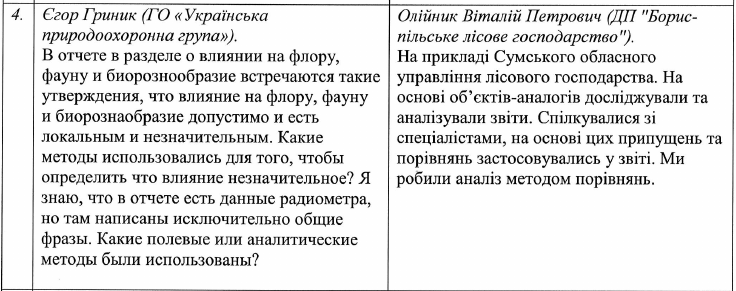 Фрагмент з протоколу громадських слухань щодо ДП “Бориспільське лісове господарство”