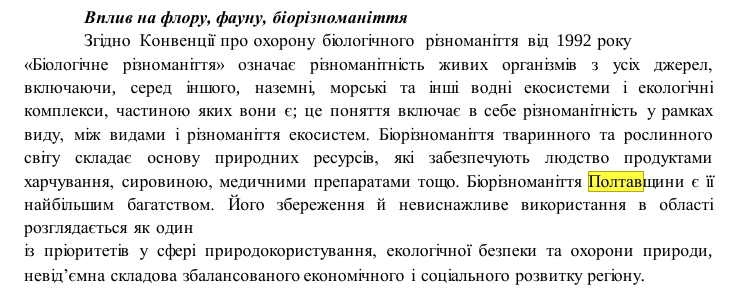Фрагмент з звіту ОВД Славського лісового господарства, вплив на флору, фауну та біорізноманіття скопійований з аналогічного звіту для лісгоспів Полтавщини