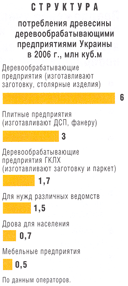 В результате возрождения деревообработки в стране объем потребления сырья отечественными предприятиями уже приблизился к 9 млн куб.м. С учетом же спроса различных министерств, ведомств и населения (см. "Структура потребления древесины…") потребность украинского рынка в древесине составляет около 13,4 млн куб.м. Поэтому в Украине действительно существует дефицит древесины, хотя, как отметил Сергей Калмыков, во многом он создан искусственно, из-за экспорта сырья за рубеж.