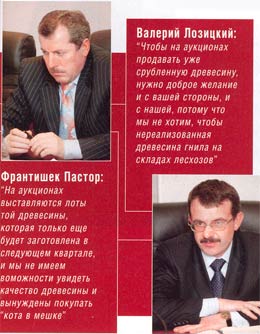 Но "лесные" чиновники по-прежнему замалчивают механизм определения цены на украинский лес, утверждая, что, мол, цену могут определить только аукционные торги. И здесь, казалось бы, правда на стороне ГКЛХ. Деревообработчики сами неоднократно высказывались за введение аукционных торгов, как справедливого рыночного механизма регулирования цены на древесину (см., например, БИЗНЕС №43 от 24.10.05 г., стр.123-132). Но, как показала практика прошлогодних аукционов, любое начинание можно свести на нет. Так, в 2006 г., как признался Юрий Марчук, лишь 15% древесины было реализовано через аукционы, все остальное было продано по прямым договорам. По мнению предпринимателей, данная ситуация возникла вследствие того, что на торги выставлялась лишь незначительная часть задекларированной гослесхозами древесины. В результате торгов цены на древесину неразумно повышались, и большая часть древесины так и не была продана. Нереализованная древесина, как рассказывают предприниматели, по прямым договорам с лесхозами раскупалась особо приближенными к ним коммерческими структурами по заниженным ценам. «Почему нам на аукционах предлагают подпар дуба по 570грн. за 1 куб.м, а втихую своим – за 350грн.?» – с возмущением обратился к представителям ГКЛХ Игорь Щапин "Мы попросили снизить цены на поты Волчанского (Харьковская обл. – Ред.) лесхоза, но главный инженер отказал. И потом мы узнали, что данная древесина была отправлена на экспорт», – дополнил Сусанта Мудалинге. И хотя в проекте нового