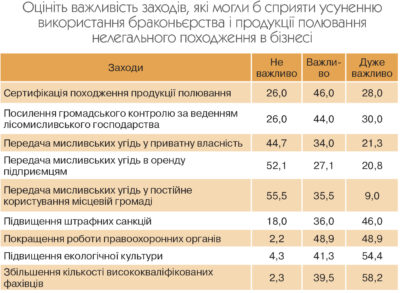 Результати опитування фахівців лісомисливського господарства України.