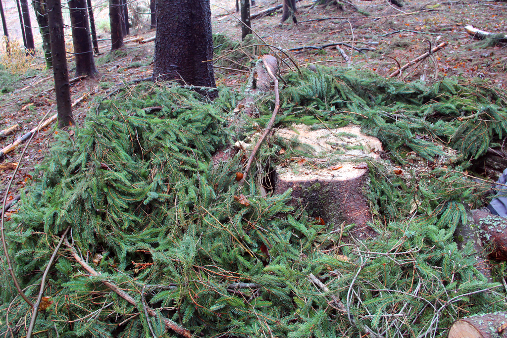 Самовільні рубки зроблені скоріше за все лісорубної бригадою. Пень був прикритий гілками