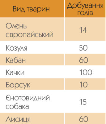 План добування дичини колективом «Гермес» за мисливський сезон 2014–2015 рр.