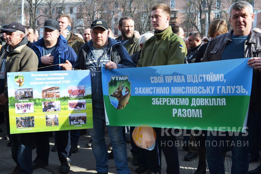 Розпочався мітинг з гімну України. Далі, Костянтин Боровик, голова Полтавської обласної організації мисливців та рибалок, пояснив, в чому полягають їхні вимоги: