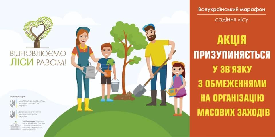 У зв’язку з обмежувальними заходами, ухвалено рішення про відміну проведення масових заходів у рамках Всеукраїнської акції «Відновлюємо ліси разом».