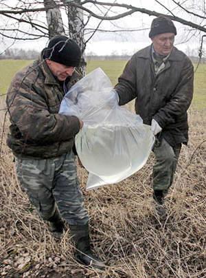 Березовый сок из наших лесов пользуется спросом в польских… аптеках. А вот на Родине, к сожалению, ему нет сбыта. На фото: ВОТ В ТАКИЕ ПОЛИЭТИЛЕНОВЫЕ МЕШКИ НА ВОЛЫНИ СОБИРАЮТ БЕРЕЗОВЫЙ СОК: ОТПИЛИВАЯ ЧАСТЬ ВЕТКИ, ВЕШАЮТ НА НЕГО ПРОЧНЫЙ ПАКЕТ, А КОГДА ОН НАПОЛНЯЕТСЯ, ЖИДКОСТЬ ВЫЛИВАЮТ В БИДОН В этом году в продолжительность сезона заготовки березового сока внесла свои коррективы погода, точнее непогода. Если первые теплые и солнечные дни посодействовали активности сокодвижения, то снижение температуры немного его затормозило. Однако качеству сока такая погода только на пользу. Ведь при более низкой температуре сок чище, прозрачнее и слаще. Вот такие профессиональные секреты раскрыла начальник консервного цеха Цуманского гослесхоза Зинаида Богдановна Рябчук. В Государственном предприятии «Цуманский лесхоз» сейчас заготавливают сок три лесничества. Мы попали в одно из таких мест, за селом Берестяное, на границе Киверцевского и Маневицкого районов. По пути слева привлекает внимание роскошный водоем, обрамленный с обеих сторон лесом. Главный лесничий Цуманского гослесхоза имеет чисто «лесные» анкетные данные: Николай Александрович Кузнецов. Водоем, обустроенный на месте бывших торфоразработок, местные жители в шутку называют океаном. Поэтому чтобы увидеть, как заготавливают березовый сок, пришлось добираться аж за «океан»… Местность, так называемый девятый квартал, вообще интересная, потому что всплошную испещрена… окопами. Они, по рассказам мастера леса Дмитрия Кирилловича Бурика, остались еще с Первой мировой войны. А березам в этом квартале уже 62 года. Сок из них добывают только второй сезон. Из деревьев такого возраста, которые через год-два пойдут под топор, сок и самый зрелый, и самый вкусный. Кое-где виднеются стеклянные осколки, это остатки трехлитровых банок, в которых когда-то заготавливали сок. Но убедились, что это не выгодно. В хорошую погоду такой тары не хватает, банки банально… крали уже с соком. Да и бьются они. Поэтому перешли на крепкие полиэтиленовые мешки, в которые помещается несколько десятков литров сока. Интересно, что сезон березового сока приносит достаточно большие прибыли гослесхозу, для которого так называемое побочное пользование (заготовка сока, ягод и грибов) в финансовом отношении достаточно выгодно. Волынь несколько десятилетий тому назад была пионером по части заготовки березового сока в тогдашнем Советском Союзе. Здесь появились и первые перерабатывающие и консервные цеха, которые в Украине сейчас остались, по-видимому, только на Волыни. Поэтому когда вы покупаете в супермаркете березовый сок с одесской, херсонской или днепропетровской пропиской, то должны понимать простую вещь: березы там просто не растут, там нет предприятий, которые бы его заготавливали. Сок-сырец из волынских березовых рощ в настоящее время активно закупают даже ровенчане. Есть договора с поляками, которые продают его в маленьких бутылках и в… аптеках. К каждой бутылке, рассказывают, прикреплена листовка с описанием целебных свойств сока. О целебных свойствах березового сока и о том, что наиболее полезно употреблять его все-таки в чистом виде, знает каждый, кто хоть немного ценит свое здоровье. Это одно из лучших природных средств для улучшения обмена веществ. Надолго запасаются соком-сырцом и жители окрестн