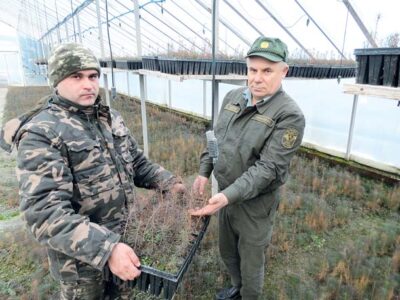 Лісничий разом із помічником Богданом Нарішиним запросили до капітальної теплиці площею 215 кв. м. У травні на половині її висіяли в ґрунт насіння, іншу відвели під сіянці із ЗКС у касетах – таких 20 тис. шт. Закупили в Славуті, там же на лінії точного висіву оператори наповнили кожну субстратом і доставленим із Грицева насінням. У ці весняні дні вже переносять змужнілі, красиві сіянці в культури. Касети обробляють спеціальним розчином проти шкідників і хвороб, просушують та складають на зберігання – до наступного використання в травні, коли знову прийматимуть у своє лоно насіння. Рослинки ж, які дещо відстали в рості, перенесуть на ділянки дорощування, де пройдуть загартування, наберуться сили, а відтак теж поповнять ряди лісових культур. І теплиці, і ділянки обладнані автоматичним поливом.