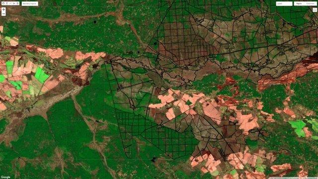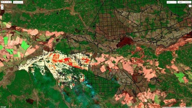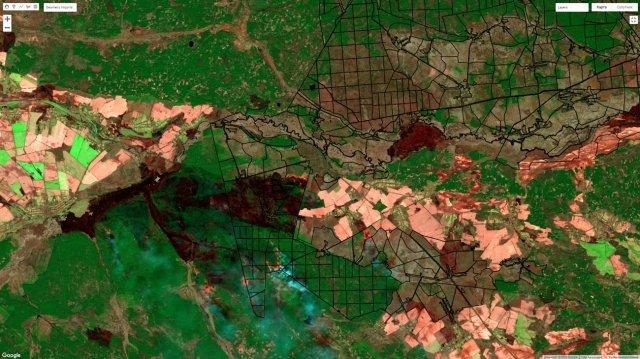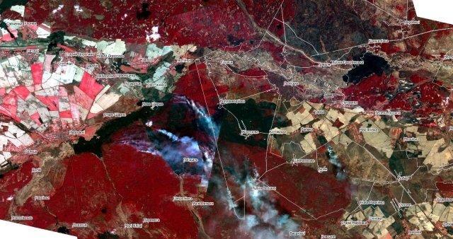 Рис. 3. Композитний знімок Planet території розвитку пожежі 3-6 квітня 2020 р на західній частині зони відчуження.