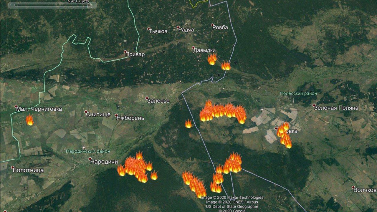 Это Народичско-Зонный пожар. Обратите внимание на новое возгорание в пойме речушки в районе Давыдки. Как и говорил, поторопился Виктор площадь фиксировать… Уже ясно, что она будет больше…Скорее всего за 10 тыс.га. перевалит.
