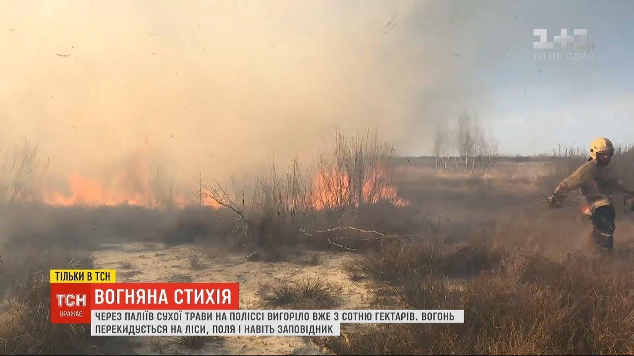 Полум’я на Поліссі винищило близько сотні гектарів лісів та полів