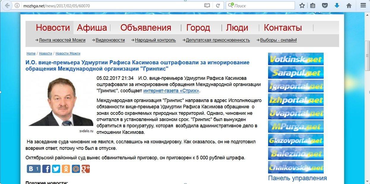 Рис. 1. За нарушение срока рассмотрения обращения и.о. вице-премьера Республики Удмуртия было назначено наказание в виде административного штрафа в размере 5000 руб.