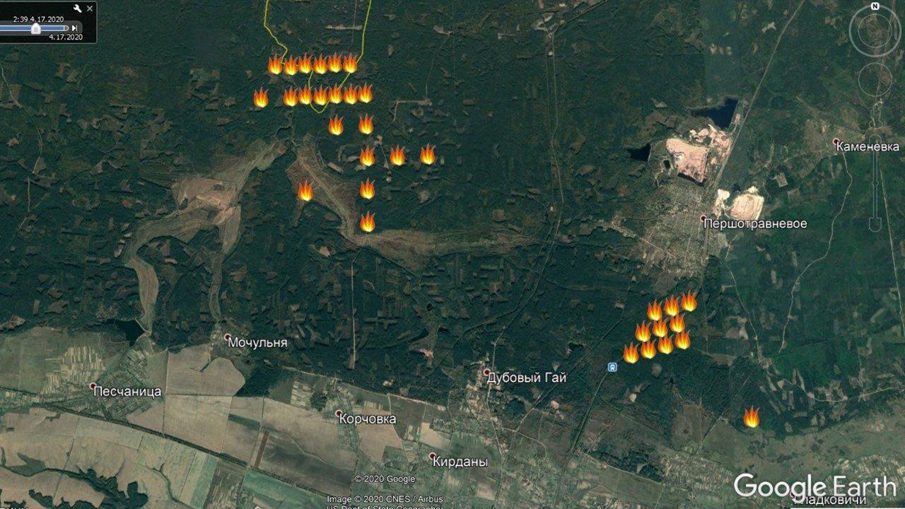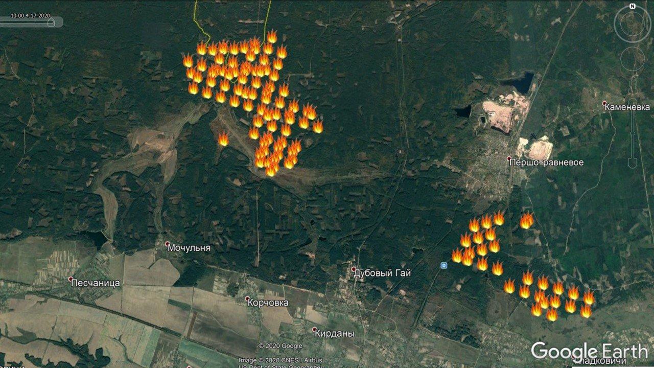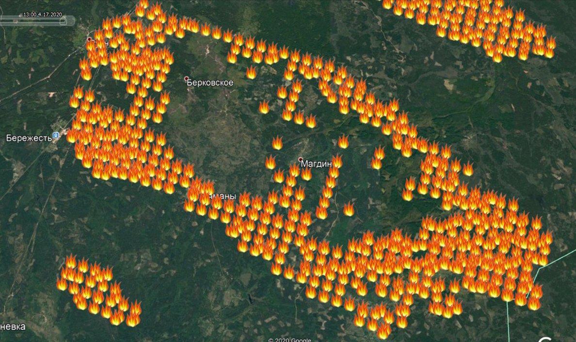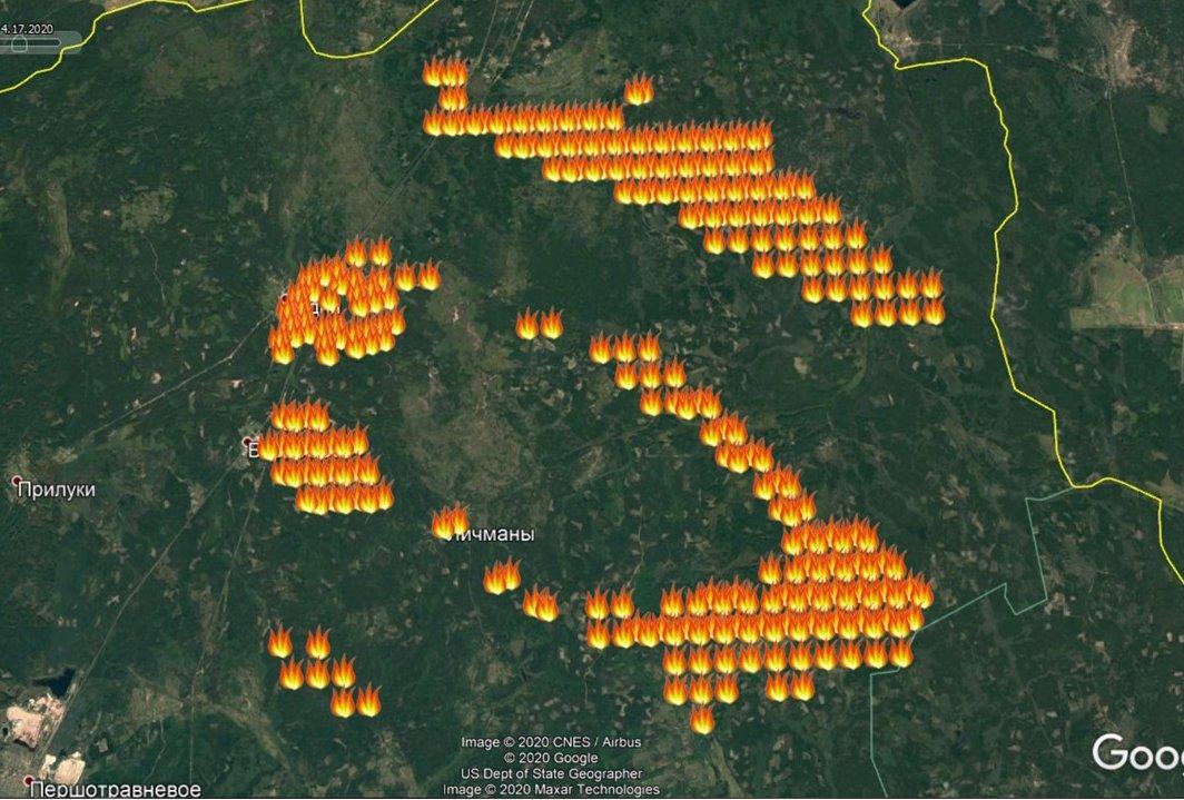 | Изменилась ситуация в южной части Овручского ЛГ. Возгорание ещё ночью проникшее на территорию РБ укрепило свои позиии. Кроме того возобновилось продвижение огня по направлению к селу Гладковичи. | |