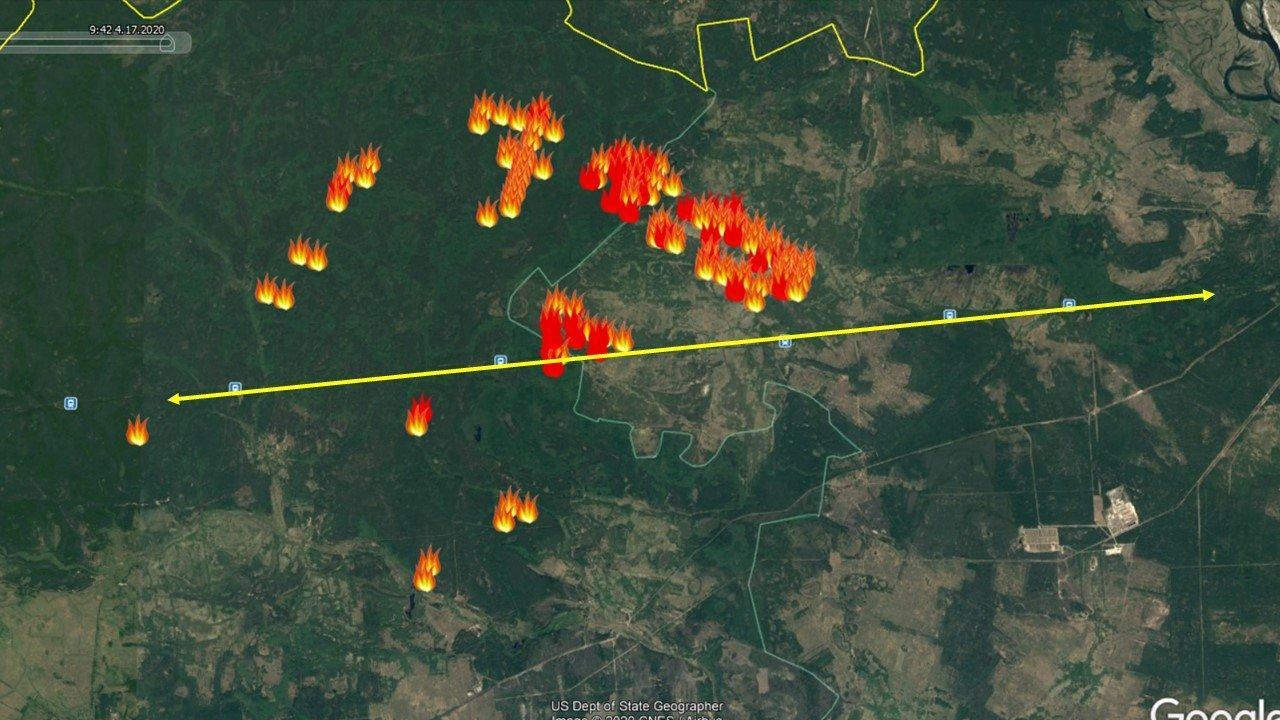 | Ситуация вглядит очень плохо: пожар на два км приблизился к границе с РБ , на 1 км подошел к станции Красняца, а главное двинулся в глубь самого большого в Зоне лесного массива. | |