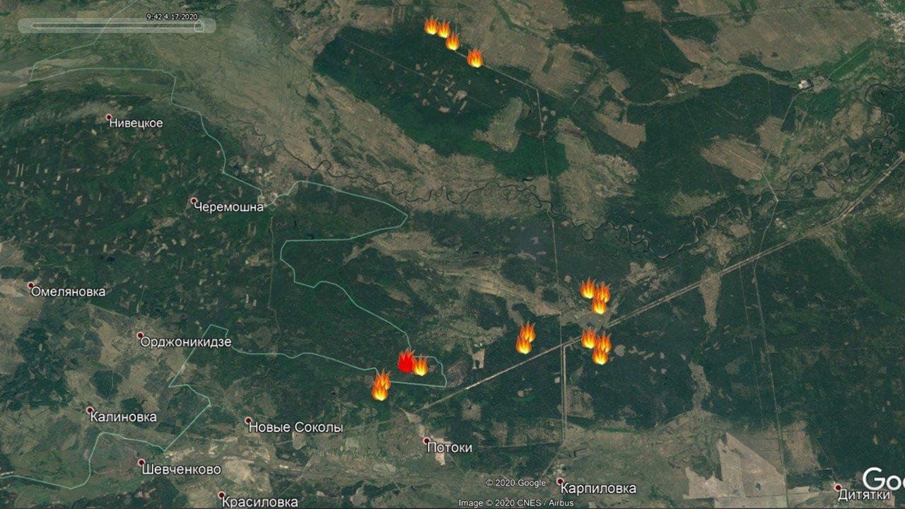 На фото: в окружение огня населенные села. Надеюсь все жители эвакуированы. На сайте Гослесагентства убрали информацию о том, “ситуація контрольована”. Боюсь, что “поздно пить боржом….” . Если люди погибнут, придется не только уйти, но и возможно сесть… М.П.