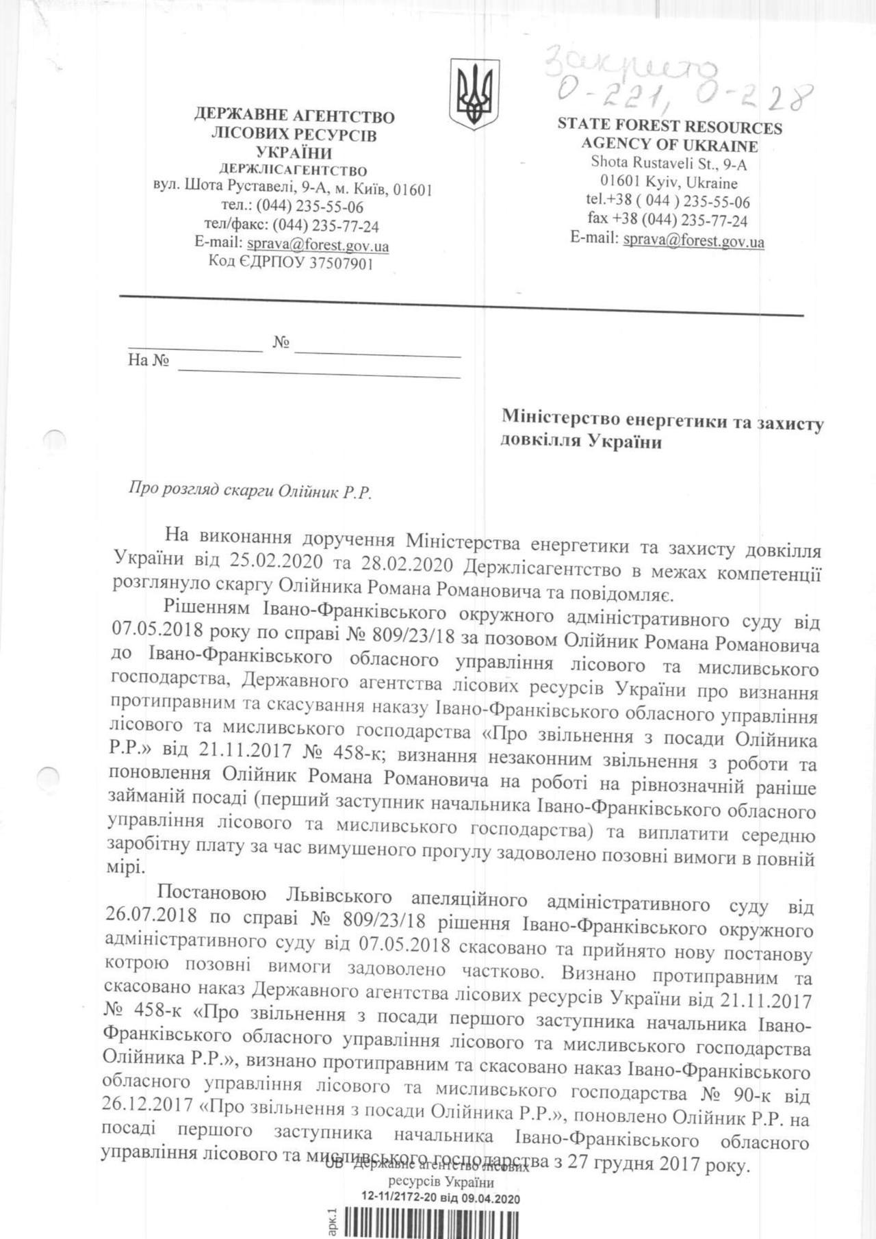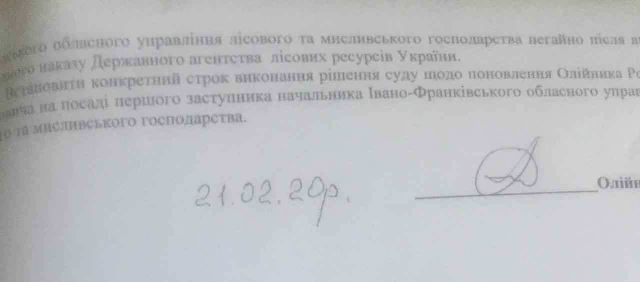 - Верховный суд отказал Гослесагентству в приостановке выполнения решении судов первой инстанции о восстановлении Романа Олейника в должности.