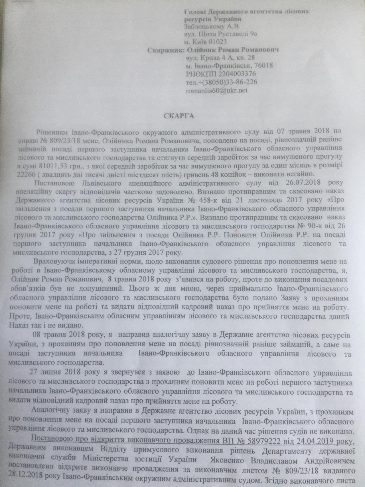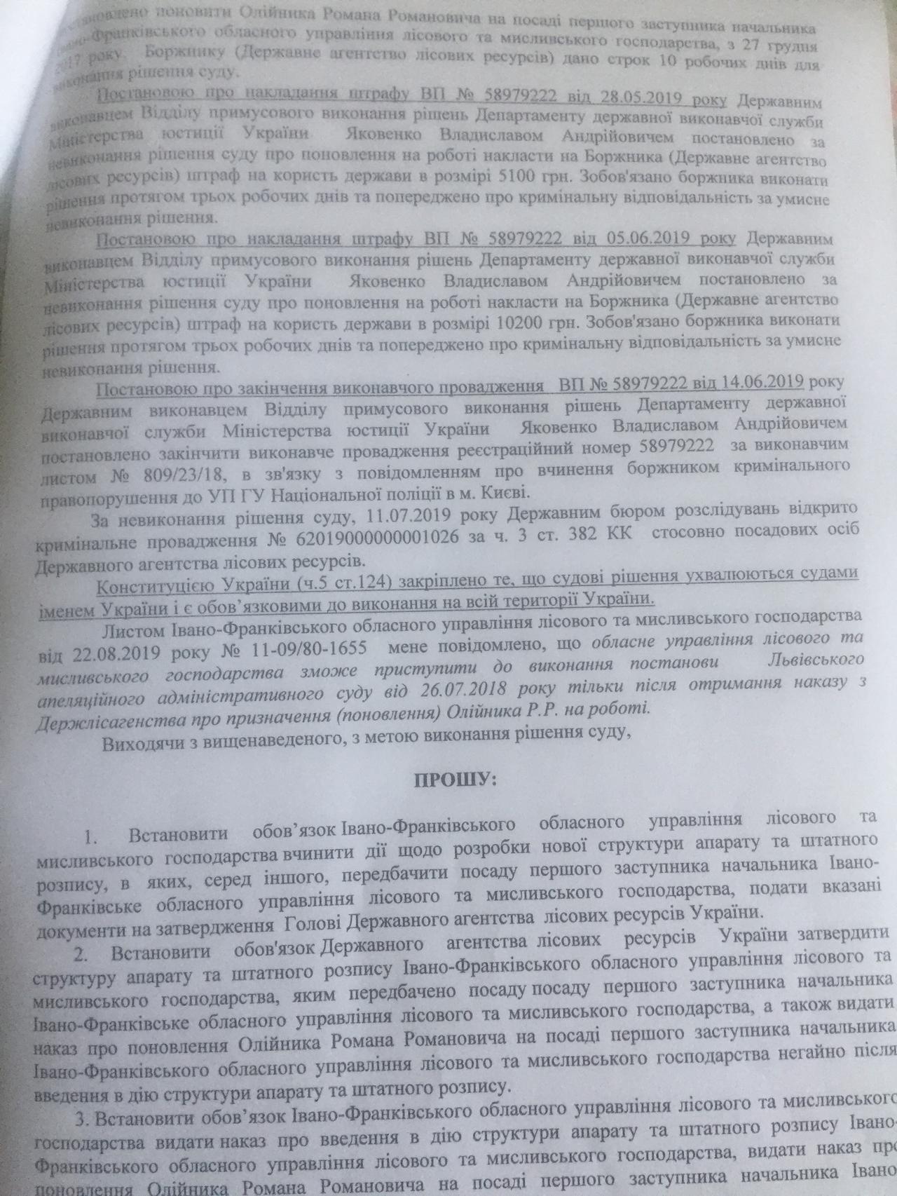 - Роман написал новому председателю Гослесагентства жалобу с требованием обеспечить выполнение решения судов…