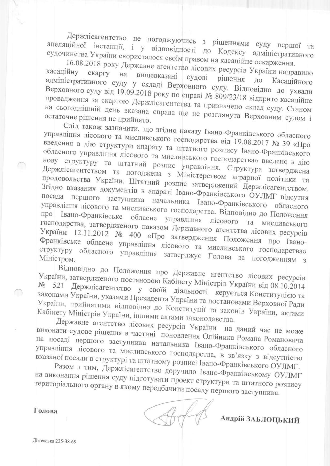 - Андрей Заблоцький – внял и обязал начальника Ивано-Франковского ОУЛМГ восстановить должность первого заместителя и представить штатное расписание на утверждение