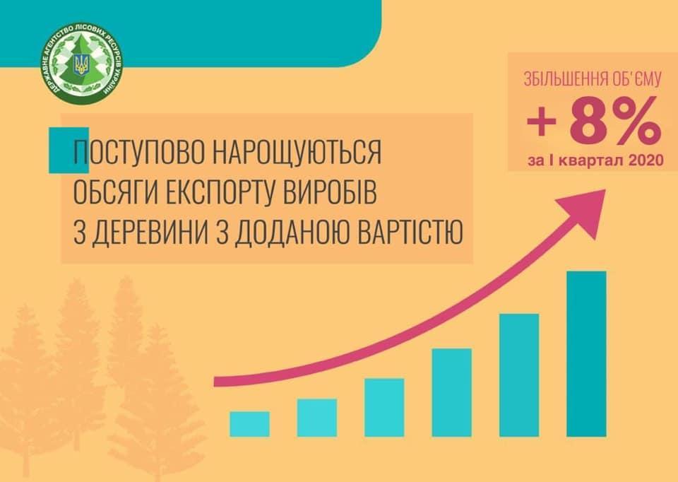 Експорт виробів з деревини підприємствами галузі склав більше 185 тис. куб. метрів. У порівнянні з аналогічним періодом минулого року загальне зростання становить +8%.