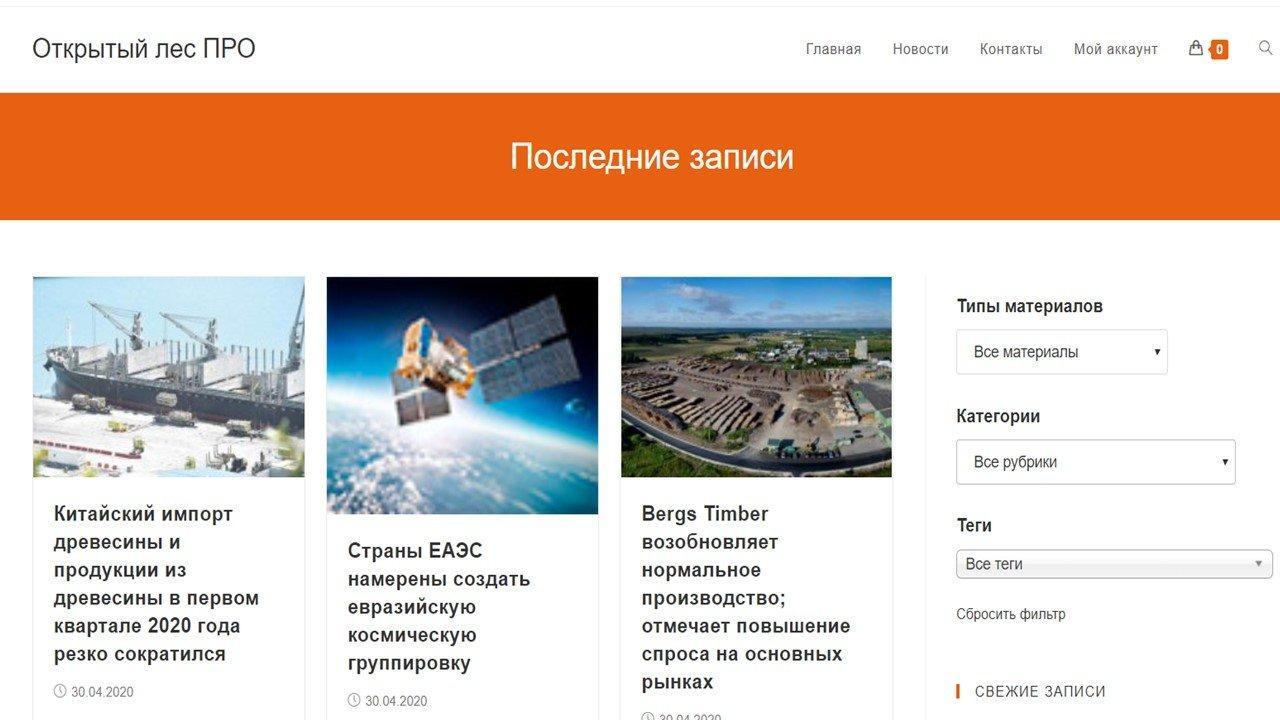 - Открыли бесплатный доступ к нашему второму сайту “Открытый лес ПРО” . Он наполняется уже несколько месяцев и имеет своих пользователей. Основные разделы сайта – Рынок древесины, цены, деревообработка, лесное хозяйство, международные лесные проекты и наши работы…
