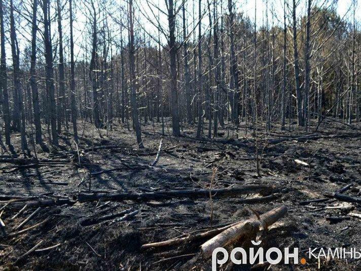 Поки Сергій Бойчук розповідає про роботу мисливської організації, його автомобіль провозить нас на свіже лісове згарище. З почорнілого лісового настилу то тут, то там піднімаються клуби диму – пожежа ще живе, тліє…