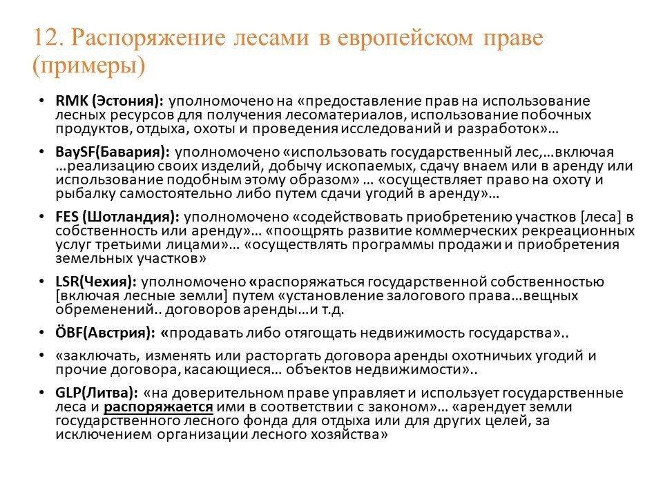 Ниже выдержки из уставов государственных лесных компаний стран Европы. Все они имеют широкие полномочия по распоряжению лесами, в том числе и право передавать их в аренду.