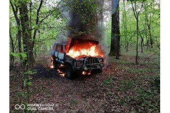 Лісопорушники, розуміючи, що тепер не зможуть втекти від лісової охорони, підпалили автомобіль, яким планували вивезти незаконно зрізану деревину.