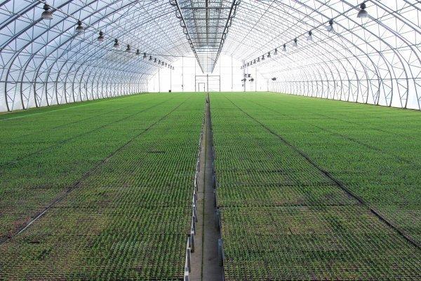В одной теплице содержится 1 миллион каркасных растений или 2 миллиона небольших контейнеров, из которых далее выращиваются растения с голыми корнями с улучшенной корневой системой.