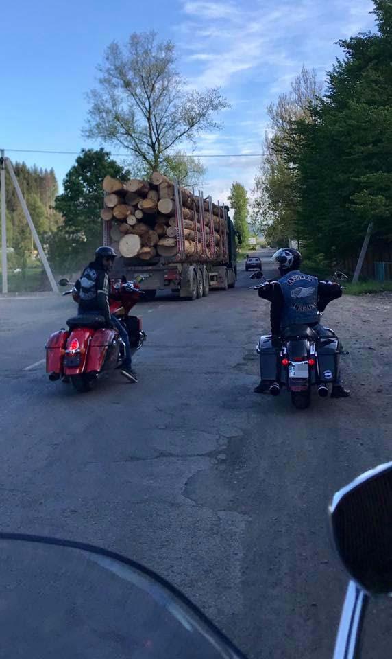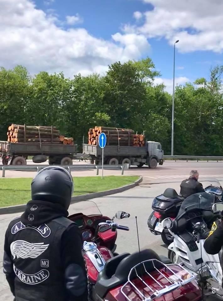 «По инициативе байк клуба Angels MC, вчера и сегодня байкеры из Киева, Днепра, Одессы, Николаева, Луцка, Львова, Ужгорода, Мукачево и др. регионов Украины сегодня совершали рейды по выявлению запрещённого к вырубке и экспорту леса по всей стране!