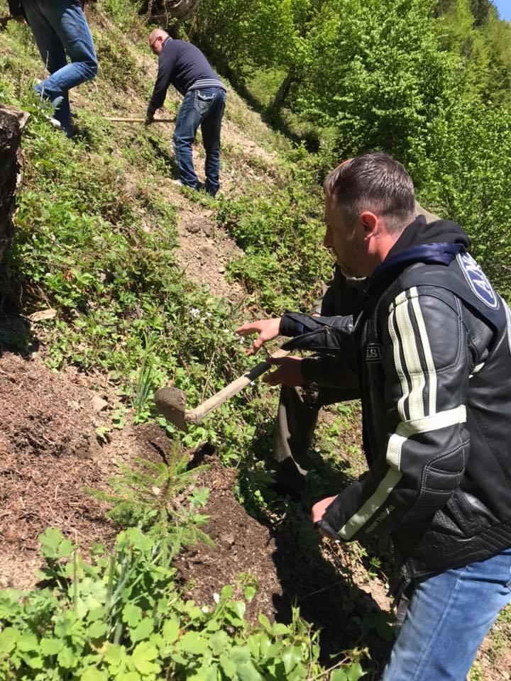 «На этом склоне горы Межигорского р-на Закарпатья пожар уничтожил лес. Сегодня байкеры приехали в рамках акции «Украина — наш дом» из Днепра, Киева, Одессы, Кривого Рога, Луцка, Николаева, Ужгорода и Мукачево, Берегово, получили инструктаж от лесных инспекторов и мотыги для посадки саженцев смереки и липы на оголённом склоне», — написал он.