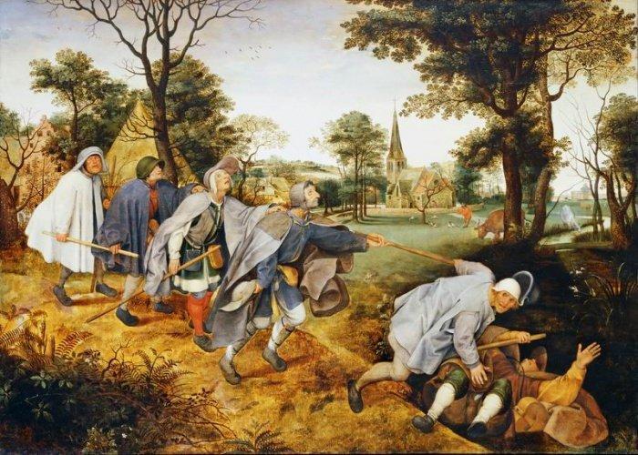 У Святому Письмі сказано: «…і якщо один сліпий поведе іншого, то обидва впадуть у яму…» За мотивами цього висловлювання створена картина великого живописця Пітера Брейгеля «Сліпі».