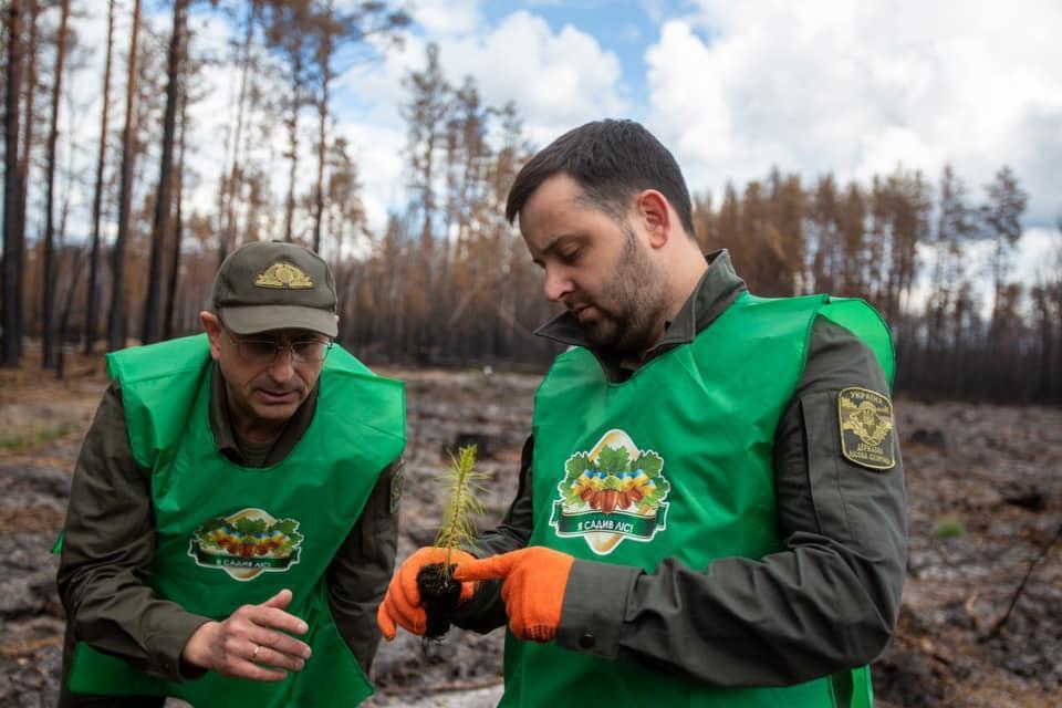 Загалом, після весняних лісових пожеж, уже відновили більше 100 гектарів лісу, висаджено 280 тис. саджанців дерев. Про це повідомив Голова Державного агентства лісових ресурсів України Андрій Заблоцький під час перебування на Житомирщині.
