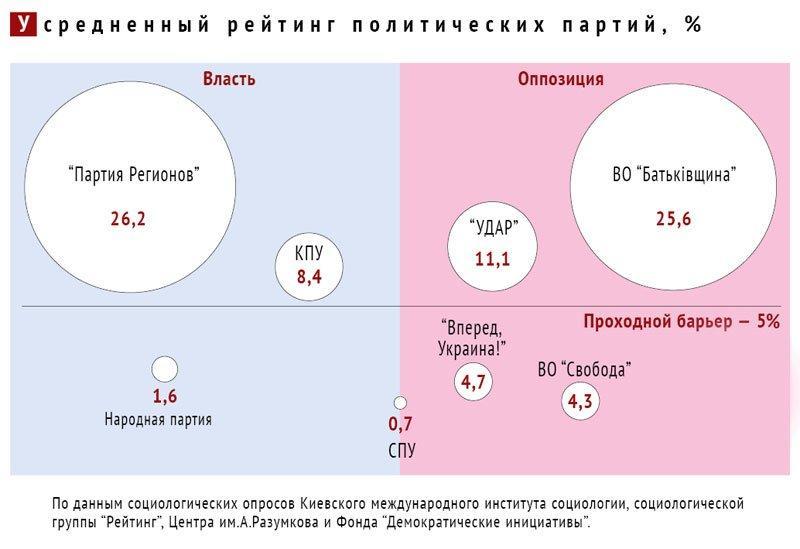 В свою очередь, одной из главных задач оппозиции во время избирательной кампании будет нейтрализация партии “Вперед, Украина!” Наталии Королевской. Социологические опросы указывают на то, что рейтинг этой партии сейчас на грани прохождения в парламент (см. “Усредненный рейтинг…”).