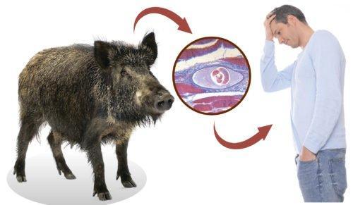 Тварини заражаються, коли з’їдають інвазовані личинками трихінел продукти забою свиней (обрізки, кухонні відходи, субпродукти), тушки хутрових звірів, а також інвазовані трупи собак, котів, пацюків. Життєздатність м’язових трихінел зберігається у тварин роками, в людини – понад 25 років.