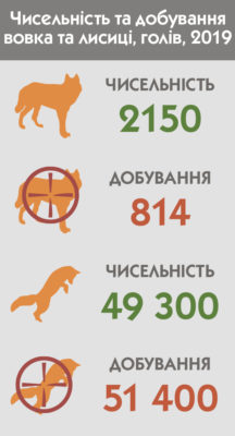 Крім браконьєрів з людським обличчям, є ще ласі до народного добра – «дикі браконьєри» – хижаки, зокрема, лисиця, чисельність якої в угіддях України хоч і поступово знижується, але все ж залишається досить високою – майже 50 тис. особин. Так, наприклад, за статистичними даними найбільша її щільність у Закарпатській, Хмельницькій та Тернопільській областях, де на 1 тис. га припадає майже три голови рудої. І це при тому, що мисливцями і єгерською службою за 2019 рік в Україні добуто 51 тис. лисиць, тобто більше, ніж було на момент обліку. Уявіть собі, що нас чекає, якщо регулювання чисельності цього хижака буде припинено, як цього добиваються «зоозохисники»? Катастрофа!