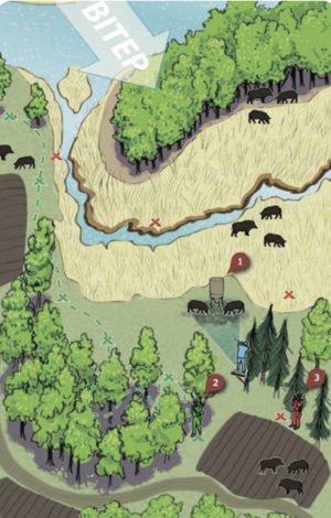 План: Необхідно знайти болотисту місцевість або вологий тінистий яр, який перетинала б стежка кабанів. Кабани відчувають себе в безпеці в таких місцях та люблять зариватися і купатися в мілкій або брудній воді. Встановіть кормушку (бажано з часовим дозатором) у кінці стежки. Кормушка повинна стояти і роздавати корм два тижні (в ідеалі, рано-вранці та за годину до сутінок). Після чого встановіть мисливську вишку за напрямком вітру за годину до того, як кормушка почне працювати. Свині вивчать, коли кормушка розкидає корм, і майже не запізнюватимуться. Як тільки побачите першого кабана, дайте йому відпочити і зачекайте, коли підійдуть інші свині.