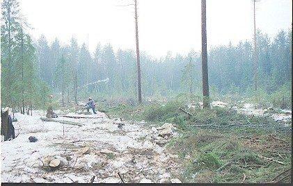 В составе предприятия 11 лесничеств, нижний склад и лесопункт, занятый вывозкой леса. 40% лесосечных работ (без трелевки) производятся силами лесхоза, 60%- выполняют частные подрядные организации. Трелевка выполняется своими силами. 3 VALMETA –842 за 1998 году при 2 сменной работе вывезли 65 тыс. кбм древесины.