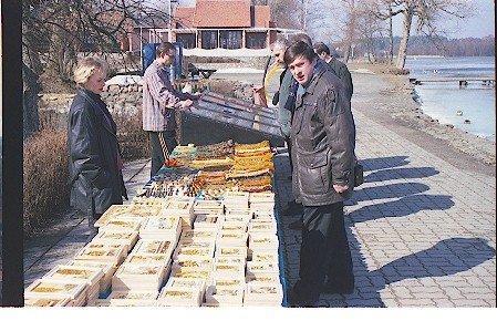 Раньше хвойная древесина, если ее можно было выгодно продать, не перерабатывалась. В настоящее время цех предприятия перерабатывает и хвойную древесину. Цех работает в две смены. Проблем с реализацией продукции нет. Лиственный лес идет на изготовление тарной дощечки, мелкий хвойный на стелажи. Переспелая береза идет на производство палет, 1кбм которых стоит 165 DM.