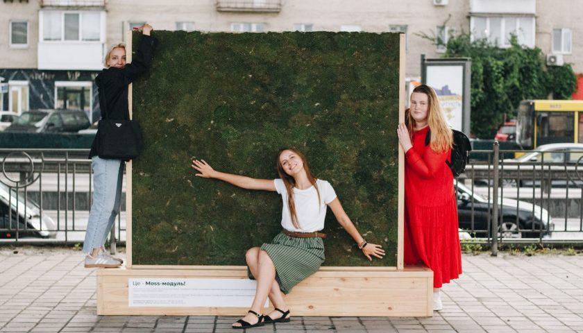 Активистки установили Moss-модуль на Набережной Днепра, чтобы снизить количество выхлопных газов и сделать прогулки горожан более комфортными.