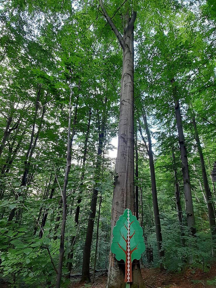 Ігор Купчак веде до унікальної ділянки парку — букового пралісу в Ямнянському відділенні. Там є дерева, яким по три століття. Такий давній буковий праліс є одним із небагатьох у Європі та вважається найстарішим. Зберігся він тому, що територія зі складним рельєфом, через потічки недоступна для трелювання-транспортування. Та й самі дерева дуже громіздкі для перевезення.