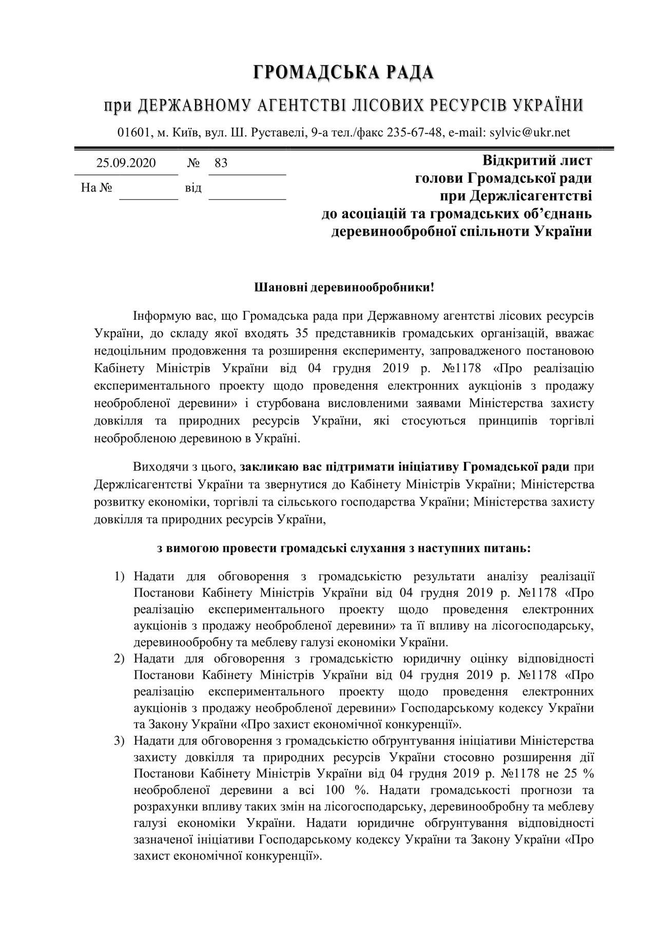Обращение правильное, но “половинчатое”: Гражданскому Кодексу не соответствуют ВСЕ попытки управлять торговлей древесиной, начиная с легендарного приказа №42 и заканчивая нынешним проектом Закона о торговли. По-хорошему, Громадська Рада совместно с ТЛУ, за деньги перечисляемые предприятиями, уже давно должны были инициировать, оплатить и получить юридическую оценку “законодательного обоснования ручного регулирования в сфере торговли древесиной”, которое родилось на Шота и только потом, перебралось на Банковую, в ВР и Минприроды.