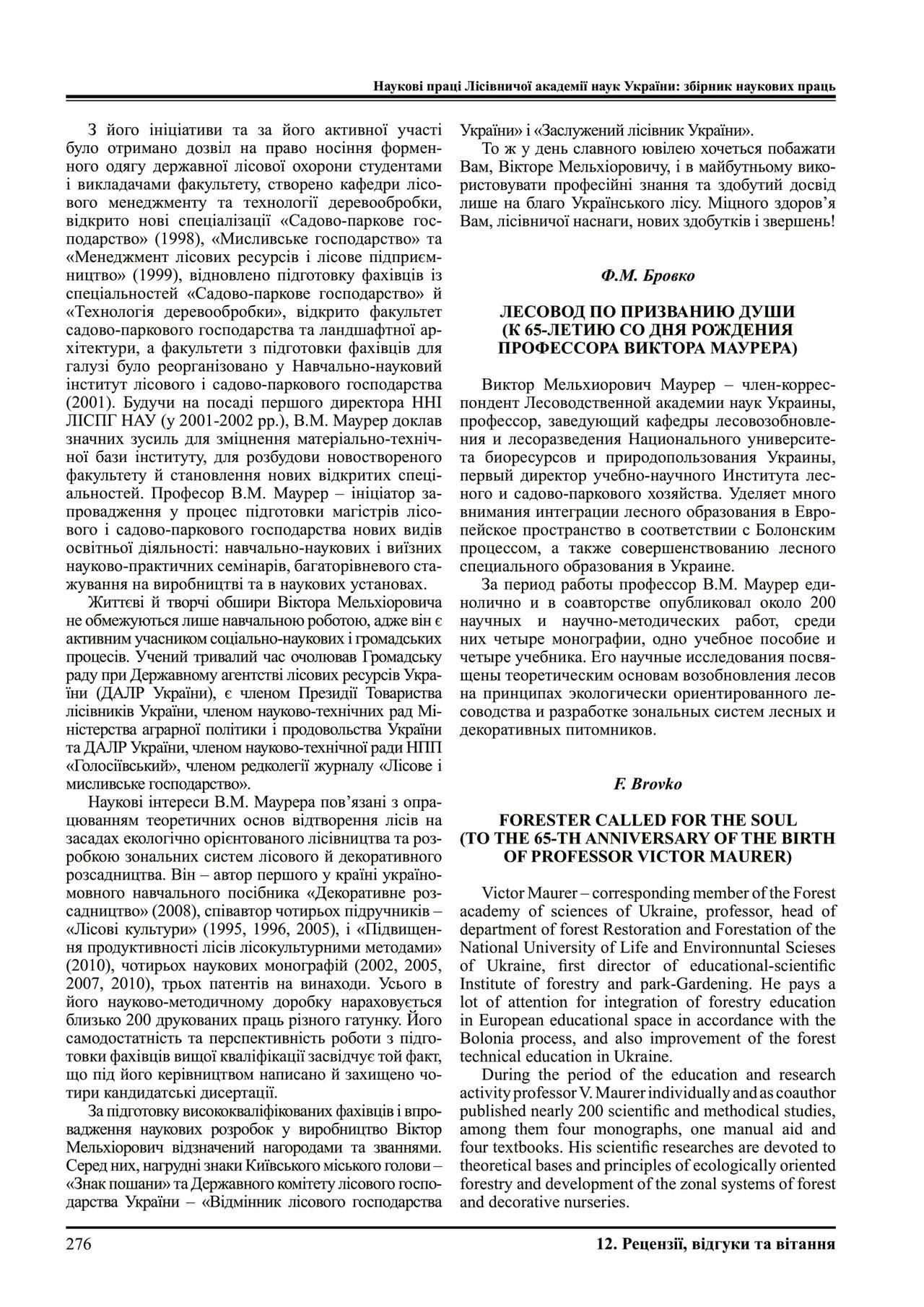В Украине Виктора Мельхиоровича Маурера лично знают и любят сотни, если не тысячи лесоводов…